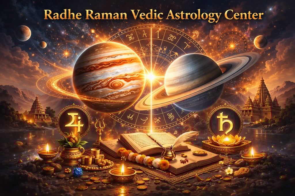 In Vedic astrology, the conjunction of Jupiter (Guru) and Saturn (Shani) is considered a deeply karmic and transformative combination. These two slow-moving and highly influential planets represent contrasting yet complementary forces — expansion and restriction, faith and discipline, blessings and karma.